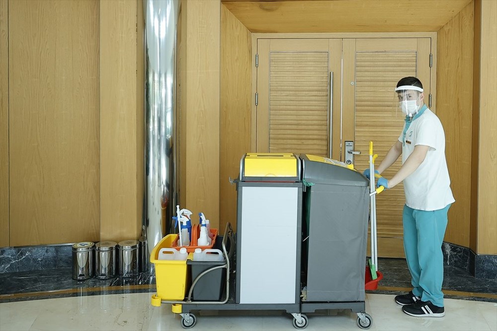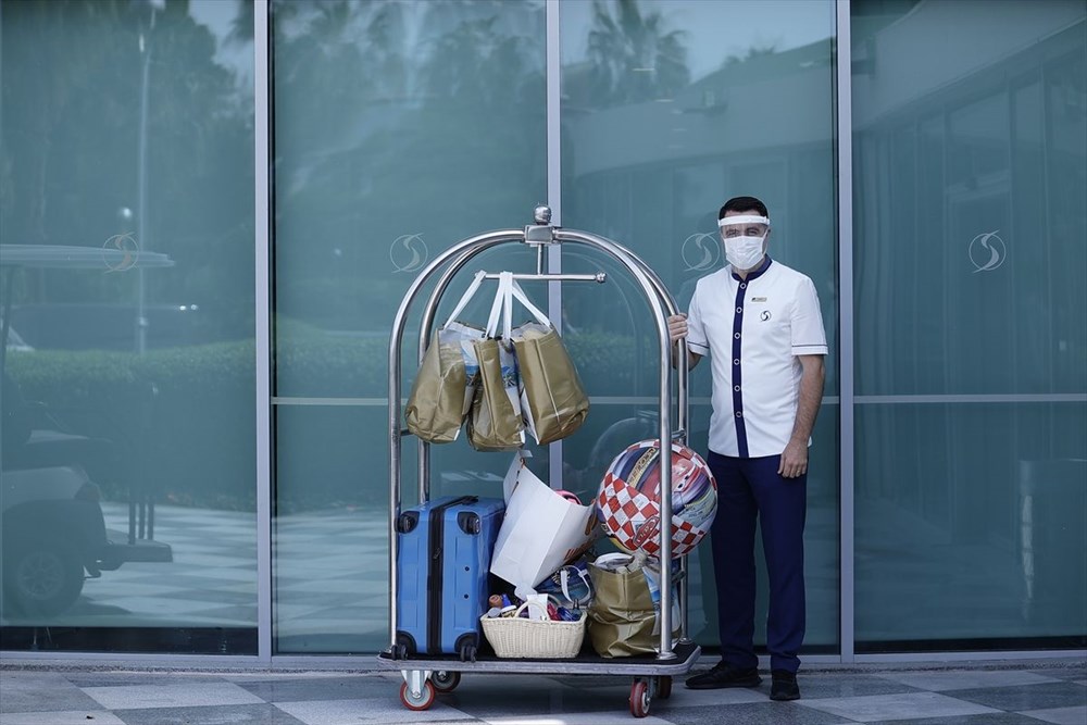 Otel çalışanının bu özverili çalışmaları bu türlü görüntülendi. Otelin girişinde karşılanan konukların HES kodları sorgulanıyor, maske takıp takmadıklarına bakılıyor, takmayanlara ise maske veriliyor. Konukların valizlerini alan vazifeliler de gerekli dezenfeksiyon süreçlerini gerçekleştirdikten sonra odalarına taşıyor.