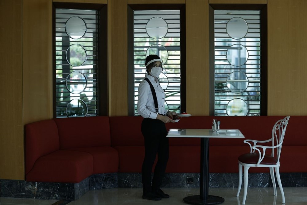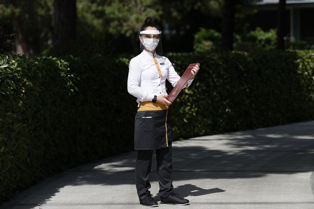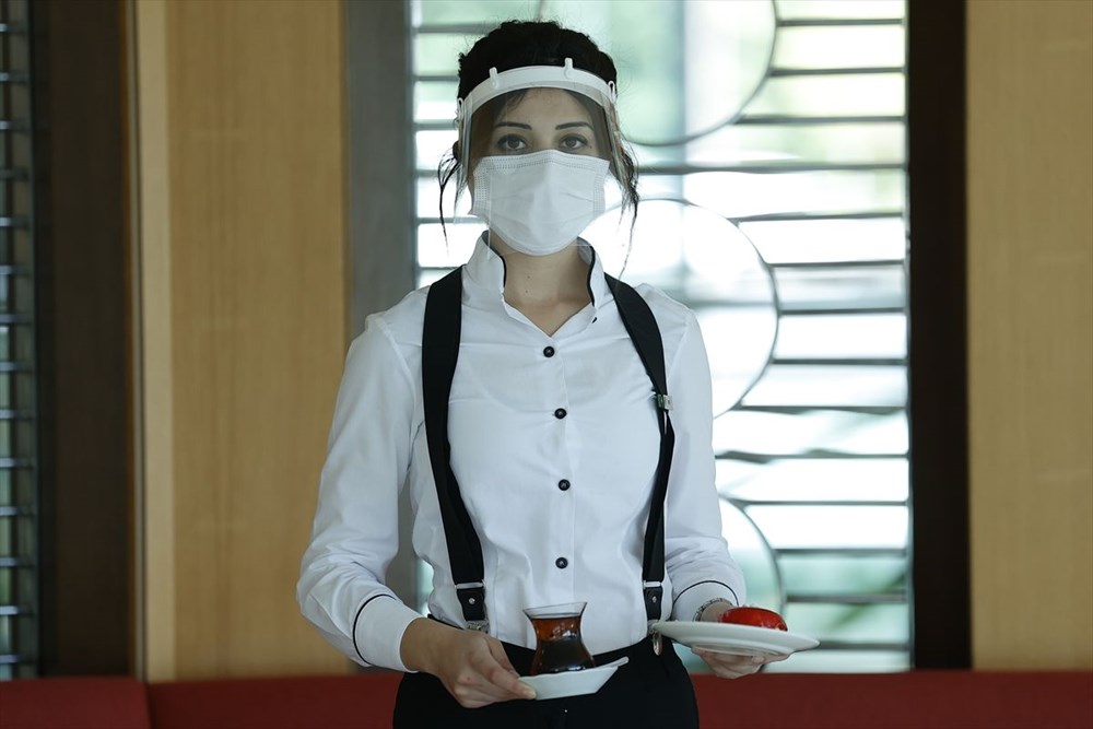 Konuklarla temas halindeki işçi ise maskenin yanı sıra siperlik eşliğinde hizmet veriyor. Mutfak kısmında de inançlı bölge içinde konukların talep ettikleri yiyecekler, işçi tarafından hazırlanıp, sunuluyor.
