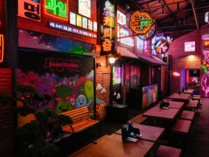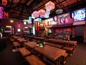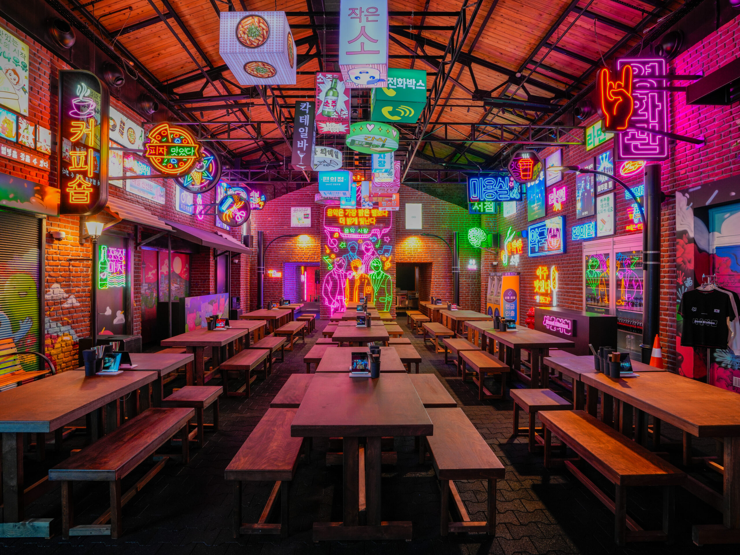 Seoul Kitchen’ın iç mekânı, Kore’nin canlı sokak kültüründen ilham alarak tasarlandı. Neon tabelalar, modern grafik dokular, Seul sokak pazarlarını anımsatan mimari detaylar ve renkli ışık oyunlarıyla mekân, misafirlerine adeta Kore’nin sokak ruhunu yaşatıyor. Renkli ışıklar, Kore müzikleri ve sokak lezzetlerinin kokusu, misafirleri Seul’ün hareketli caddelerine götürüyor. Gastronomiyle birlikte tasarım da deneyimin önemli bir parçası haline gelirken, mekânda yer alan karaoke alanı, misafirleri Seul’ün enerjik gece hayatına davet ediyor.