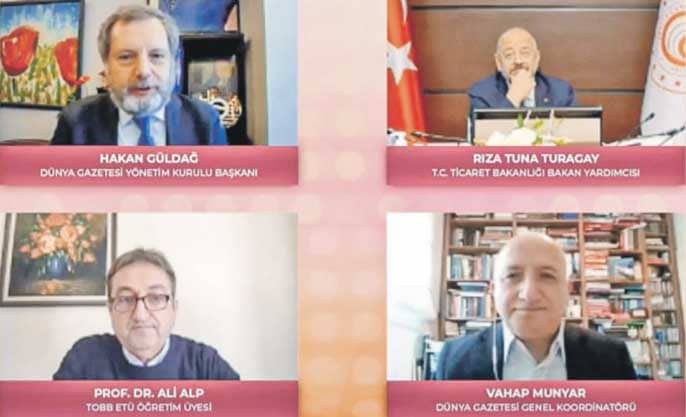 Yönetim Kurulu Başkanımız Hakan Güldağ’ın moderatörlüğünde gerçekleşen “Ekonominin Yeni Yol Haritası” panelinde konuşan Ticaret Bakan Yardımcısı Rıza Tuna Turagay, Sektörün sorunlarını ve ihtiyaçlarını bildiklerini ve hükümetin bu konular üzerinde çalıştığını belirterek, 2021 yılının bir 2019 olamayacağını ama yaraların sarıldığı bir yıl olacağını ifade etti. Turagay, “2019’da turizm Türkiye’ye 30 milyar dolarlık net döviz girdisi sağlayan bir sektördü. Türkiye’nin turizm potansiyeli çok yüksek. Biz eğer bu dönemi iyi atlatabilirsek önümüzdeki yıllarda anormal birikmiş bir tasarruf var. Bunlar aslında birikmiş bir talep olarak karşımıza çıkacak. Dünyada 20 trilyon doların üzerinde kaynak ve likidite aktarıldı piyasaya. Bu paralar bu likidite bir şekilde Türkiye’ye de gelecek. Gerek turizm olarak gerek yabancı sermaye olarak gelecek” diye konuştu.